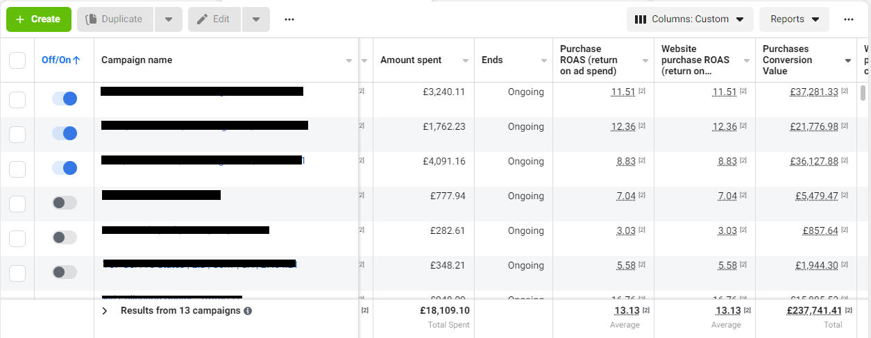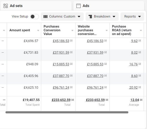 This fashion brand has 50+ SKUs that weren’t being advertised, so we leveraged a custom campaign structure to advertise every single SKU separately throughout the entire year.